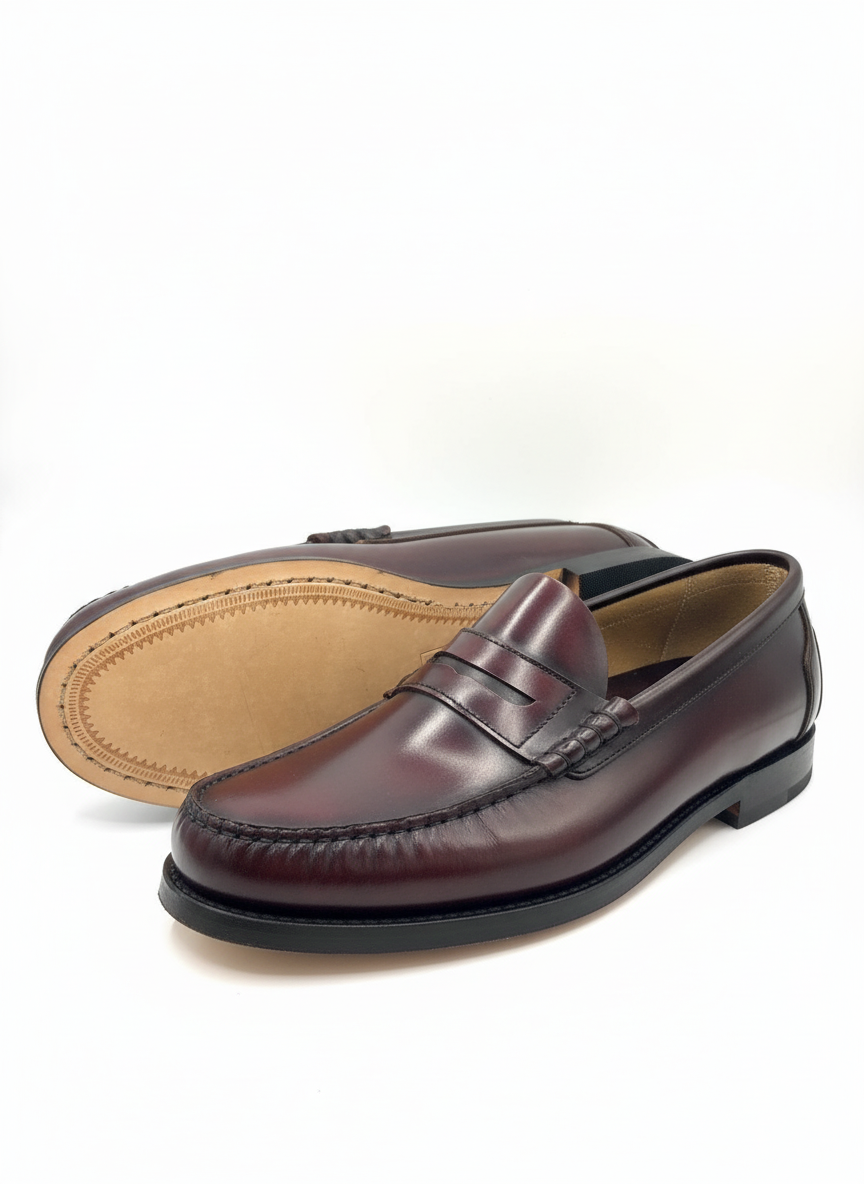 Castellano en piel florentic burdeos es pura elegancia española. Con su característico antifaz y el inconfundible brillo de la piel florentic, proyecta distinción a cada paso. Su suela de cuero, cosida artesanalmente, es sinónimo de calidad y durabilidad.